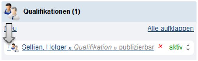 … die Qualifikation anklicken, um zusätzlich auch die Eigenschaften der Bestätigung der Qualifikation ausfüllen zu können.