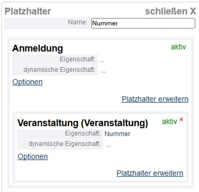 Ein Platzhalter startet immer von dem Objekt aus (hier z.B. „Anmeldung“), welches in der Vorlage in der Eigenschaft „eingesetzt in Objekt“ hinterlegt ist.