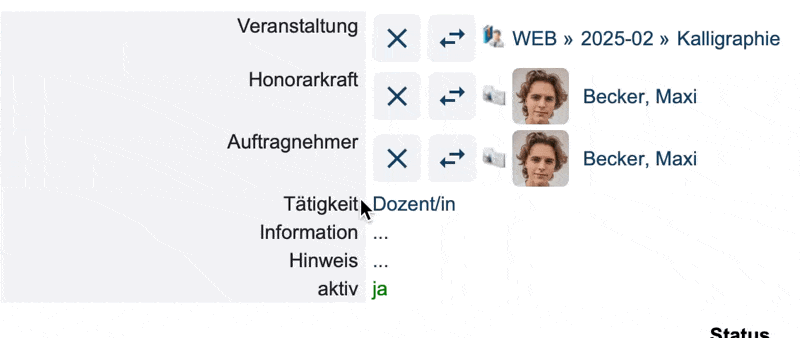 • Durch ein Klick auf dieses Symbol, kann das verknüpfte Kontextobjekt in der Eigenschaft direkt ausgetauscht werden.