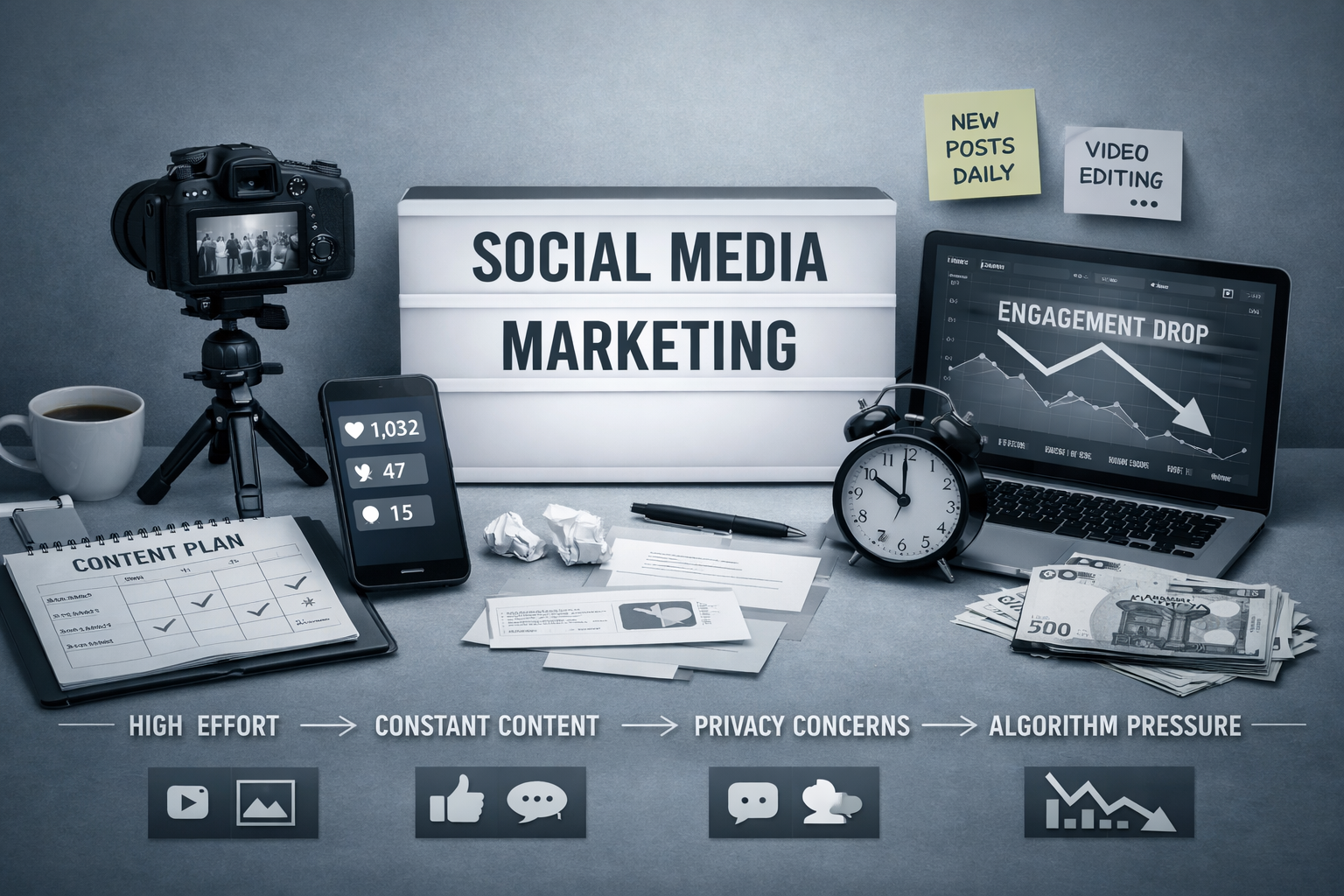 Das bedeutet, man hat wohl einen relativ hohen Aufwand. Und den hat man nicht nur einmal. Man muss ständig präsent sein. Handelt man nicht, verschwindet man aus den News-Feeds.